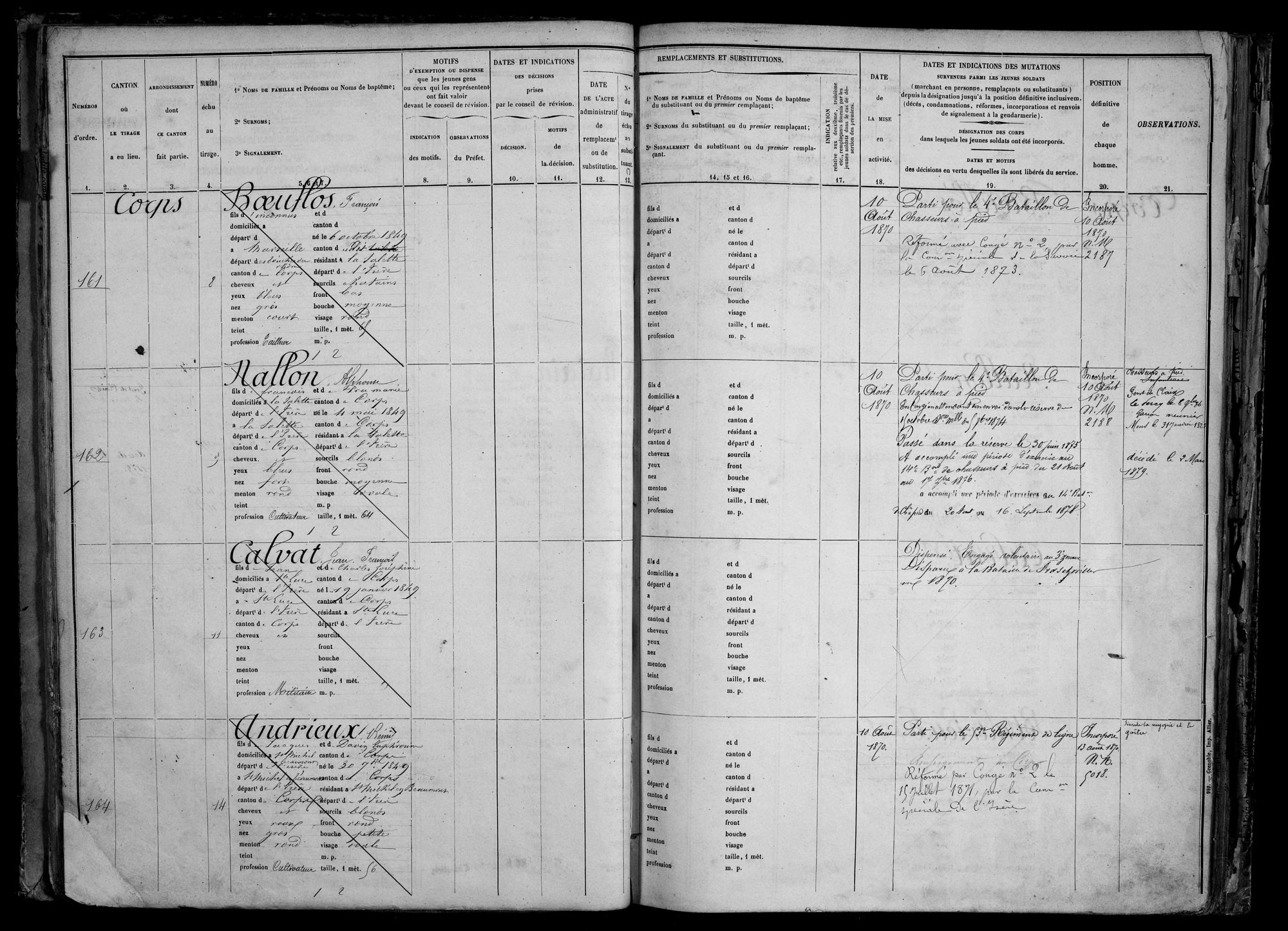 Vous trouverez sur notre site les registres matricules militaires des classes 1859 à 1924 (les registres matricules peuvent être mis en ligne au bout de 120 ans à compter de la naissance en raison des éléments médicaux, donc 100 ans à partir de l'année du registre). Les images des registres des classes 1859 à 1921 ont été migrées de l'ancienne visionneuse à ce nouvel outil de visualisation et ont été enrichies des classes 1922 à 1924 suite à une opération de numérisation menée au printemps 2025.